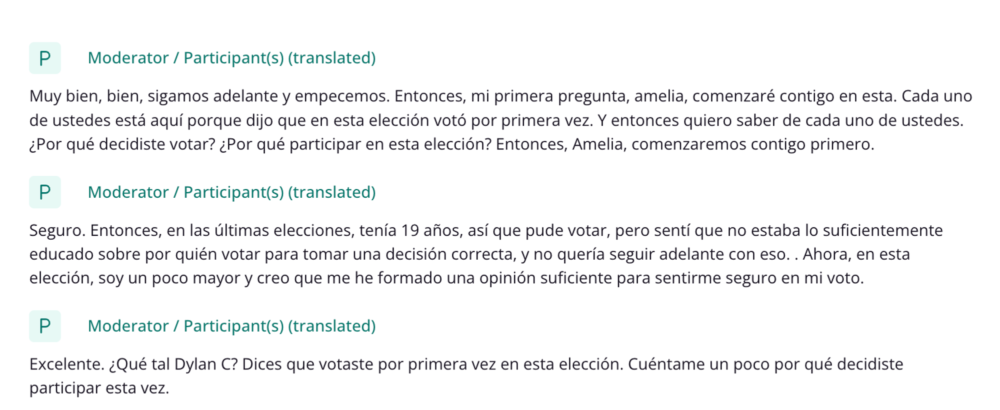- Asking your SimTran service to provide transcripts with labelled speakers in this format