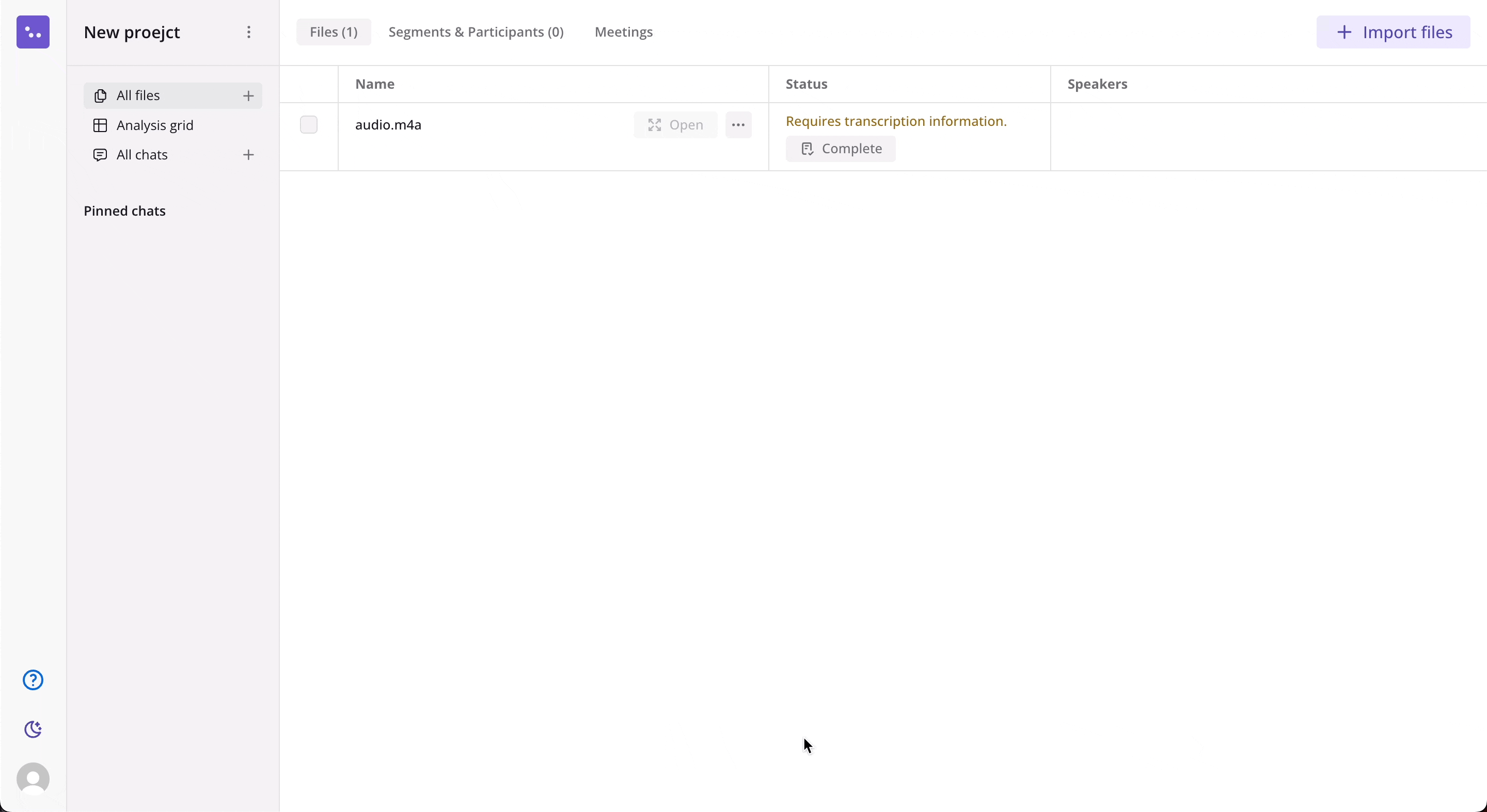 - From here you can transcribe, process and analyse your files